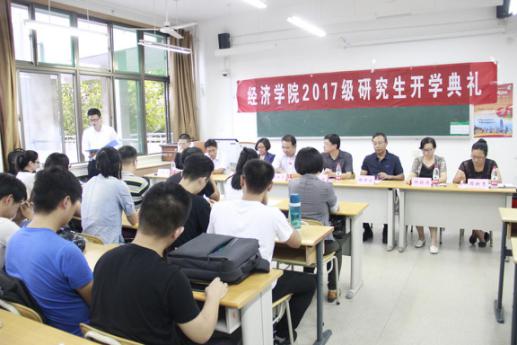 9�14日下�4�50,经济学�2017级研究生开学典礼暨入学教育大会于舜耕校�3303教室正式举行。经济学院院长董长瑞,党委书记吴红文,副院长陈保启、王传荣,党委副书记任海伦、仵颖涛,教师代表刘华军、院团委书记兼学工办主任周新秀出席本次开学典礼�2017级所有研究生到场参加,会议由仵颖涛副书记主持�