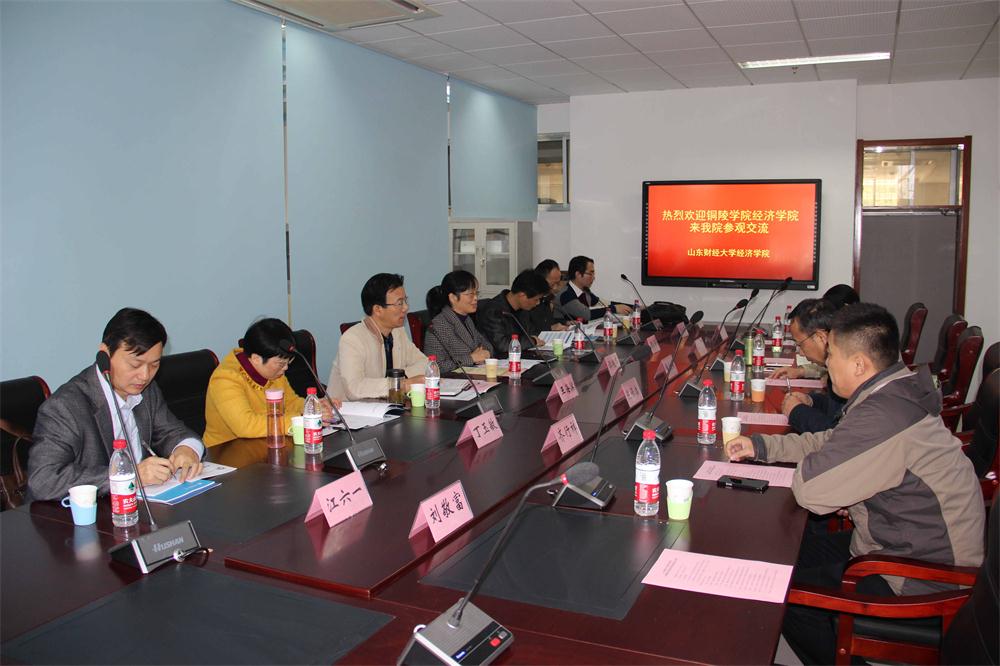 谭院长一行在陈保启副院长的陪同下参观了教学实验中心�在两院交流座谈会上,董长瑞院长代表学院对谭院长一行的到来表示热烈欢迎,并简要介绍了我院的基本情况和办学特点�谭艳华院�对我院领导的热情接待表示衷心感谢,并介绍了铜陵学院师资力量和学科专业建设情况,谭院长表示:�山东财经大学经济学院在办学理�、人才培养和实验室建设等方面成果显著,值得学习借鉴,同时,希望今后能够进一步加强双方之间的交流合作,共同推进教育事业的发展。”随后,双方在研究生招生、人才引进等方面进行了深入交流�