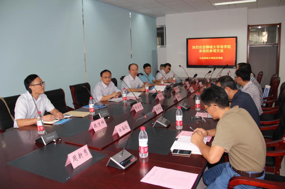 董长瑞院长代表学院欢迎马院长一行的到来,就商学院对我院一直以来的支持表示感谢,并详细介绍了我院专业设置、师资队伍、学科建设、教学科研等方面情况。马中东院长对我院的热情接待表示感谢,对经济学院近年来所取得的成绩表示赞赏,并介绍了聊城大学商学院的基本情况及办学特点。随后,双方围绕高层次人才培养引进与作用发挥、科研团队建设、高水平论文发表、研究生培养、国际化办学、学生就业、学院管理体制、实验教学、教师考核等问题展开讨论,在许多问题上取得了共识�