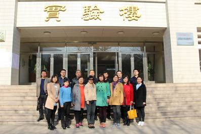 来宾在实验楼前合�