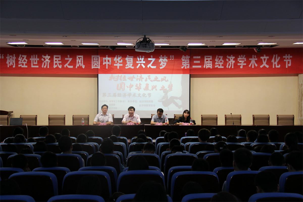 5�21日下�14:00,由校学生工作(部)处、校团委和经济学院共同主办的“树经世济民之风,圆中华复兴之梦”第三届经济学术文化节开幕式于圣井校区敏行楼B5-101多功能报告厅顺利召开。校团委书记刘奇耀�学生处副处长于栋�经济学院党委副书记任海伦以及院团委辅导员付雯老师出席,经济学�13�14级学生参加开幕式,开幕式由院党委副书记任海伦主持�