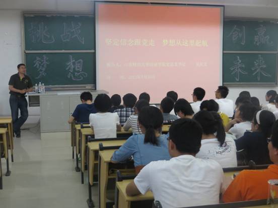 5�30日晚18:00,经济学院党总支书记吴红文在圣井校区敏行�B5201教室�2012级全体学生作了题为“坚定信念跟党走,梦想从这里起航”的讲座。此讲座系我院“红心向党,青春激扬”主题教育系列活动之一�