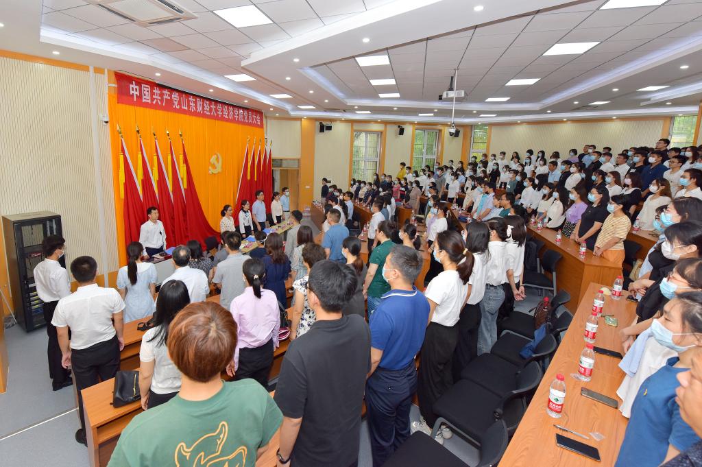 中国共产党山东财经大学经济学院党员大会圆满完成各项议程,在雄壮激昂的《国际歌》声中胜利闭幕。随后全体党员面对党旗重温入党誓词。会后大家进行合影留念�