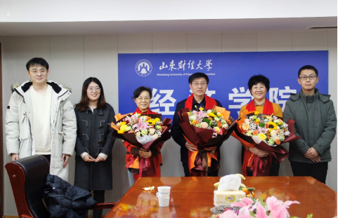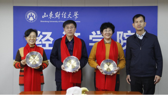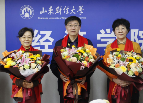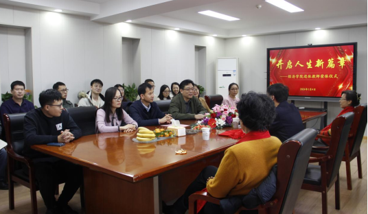 2014�1�4日下午,我院举行退休教师荣休仪式并召开座谈会。退休教师董长瑞、仵颖涛、韩玉玲参加仪式,山东财经大学副校长、经济学院院长谢申祥出席仪式,仪式由党委书记姜伟主持�