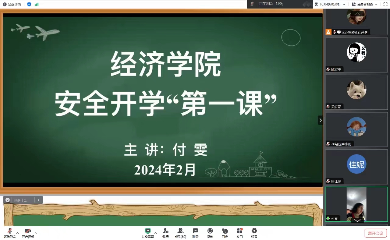 新学期伊始,为落实立德树人根本任务,进一步加强对学生的安全管理和教育,引导学生提高安全素养,增强防范意识,帮助学生们养成良好的习惯,营造和谐有序的校园氛围�2024�2�28日,经济学院各班级召开了安全开学“第一课”主题教育班会,辅导员及全体学生参加了主题班会�