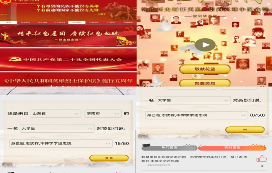 在“云端缅怀英烈志,网络共筑精神碑”清明节线上祭扫英烈活动中,学生登录中华英烈网,通过在线献花、留言寄语、观看英烈视频等多种方式,向英烈们表达敬意和怀念�
