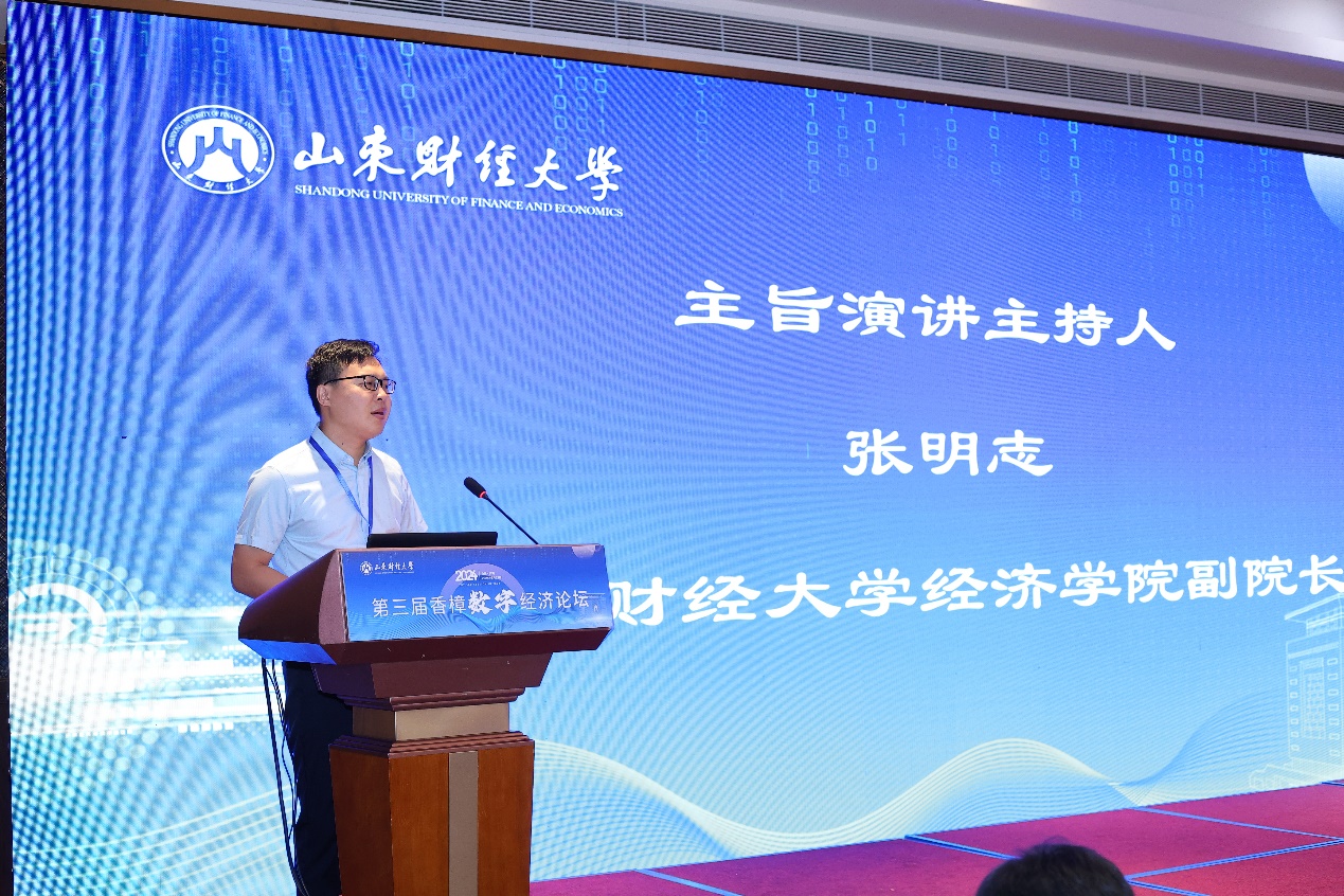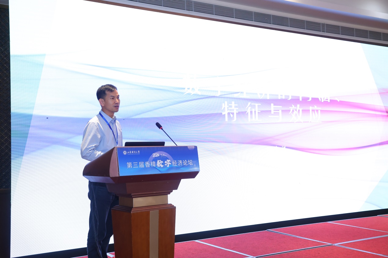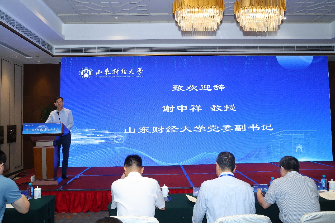 谢申祥对与会来宾表示诚挚欢迎,并介绍了山东财经大学的办学情况及数字经济相关专业发展历程。他表示,习近平总书记在山东考察时强调,全面释放实体经济和数字经济融合效�,因地制宜发展新质生产力。此次论坛恰逢其时,意义重大,期待通过各位学者的深度交流与讨论,集思广益,为推动发展数字经济提供理论支持和政策建议�