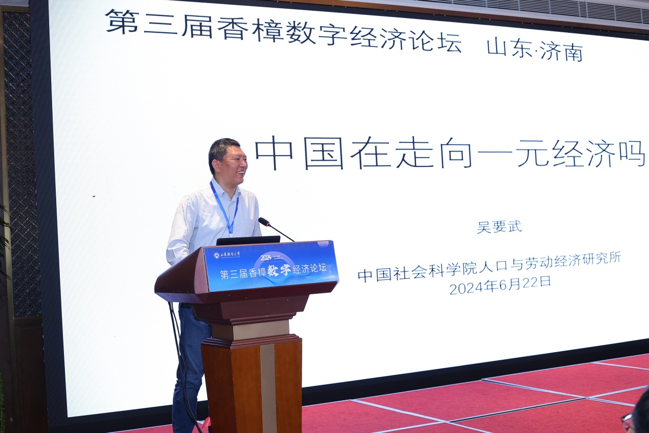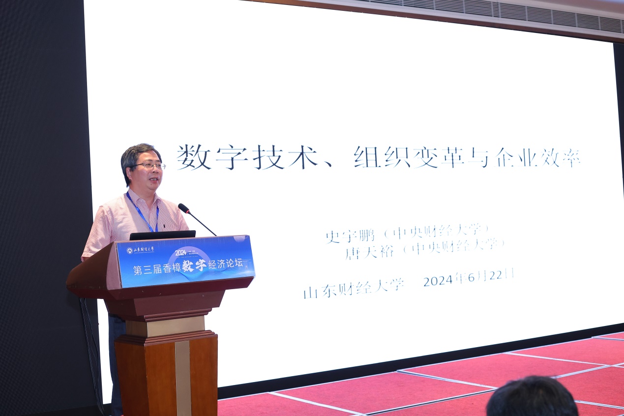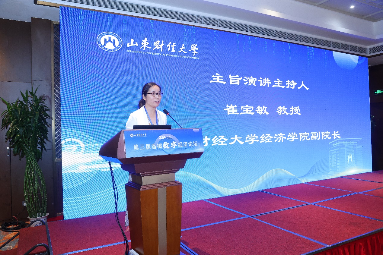 谢申祥对与会来宾表示诚挚欢迎,并介绍了山东财经大学的办学情况及数字经济相关专业发展历程。他表示,习近平总书记在山东考察时强调,全面释放实体经济和数字经济融合效�,因地制宜发展新质生产力。此次论坛恰逢其时,意义重大,期待通过各位学者的深度交流与讨论,集思广益,为推动发展数字经济提供理论支持和政策建议�