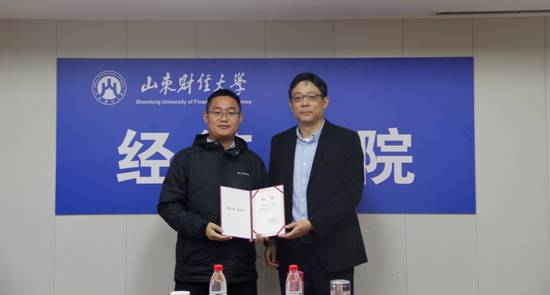 (通讯员:付雯 刘素清)11�14日上午,山东管理学院科研处处长兼经贸学院院长杨成宝,经贸学院副院长张劲青、数字经济与区域高质量发展研究中心主任朱庄瑞、数字经济系副主任尹彦辉、数字经济系副教授王惠庆一行来我院就学院人才培养、师资建设等方面进行交流访谈。经济学院党委书记姜伟,副院长张明志,院长助理齐行祥,教师代表邱兆林、耿翔燕,以及两校合作培养的硕士研究生参加座谈。交流会由张明志主持�