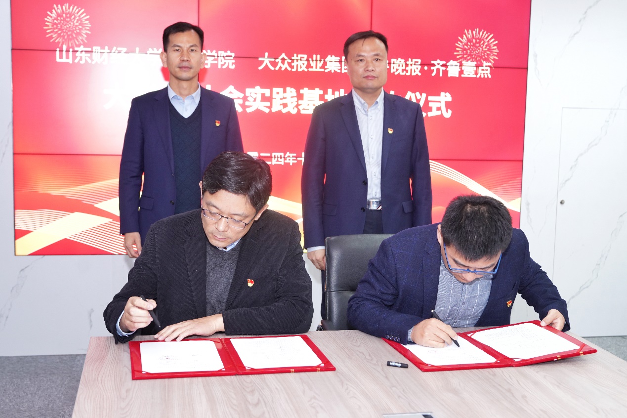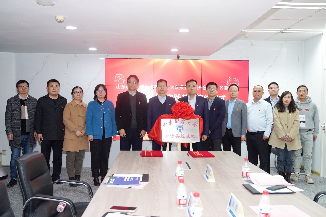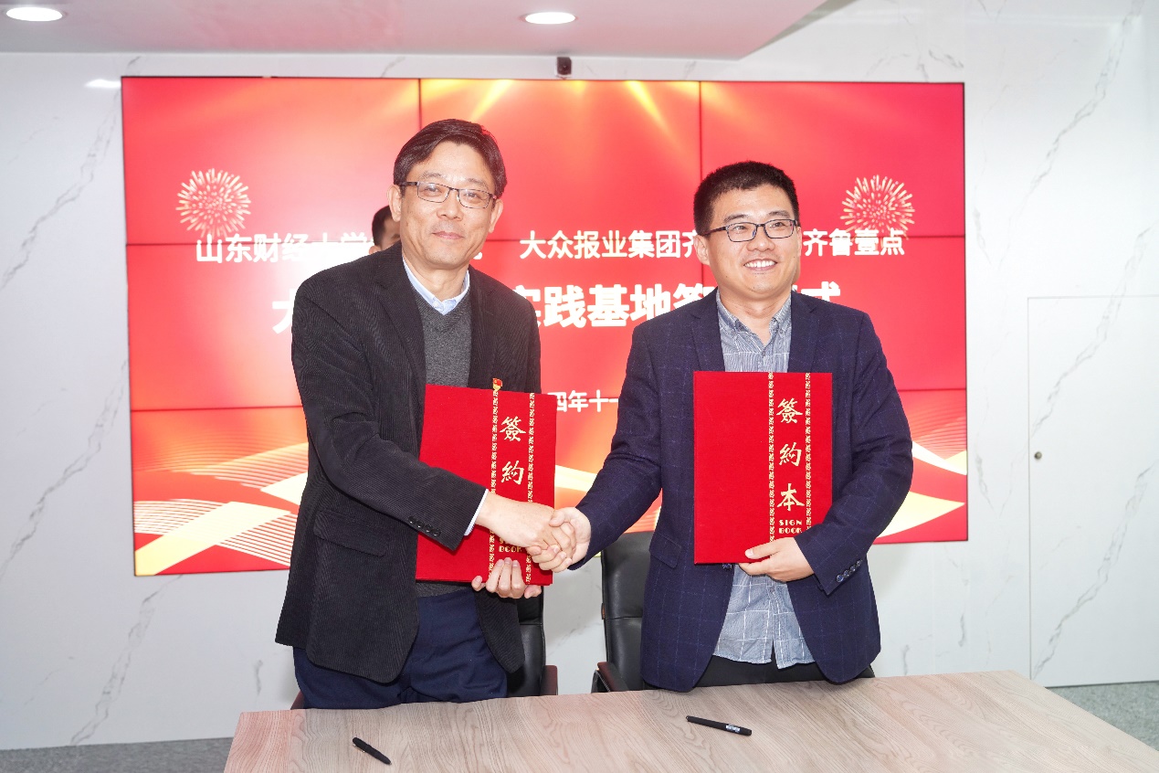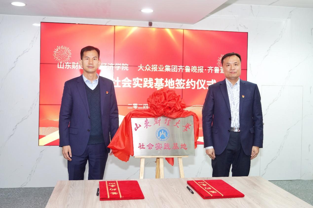 谢申祥与魏传强共同为山东财经大学齐鲁晚报·齐鲁壹点社会实践基地揭牌�