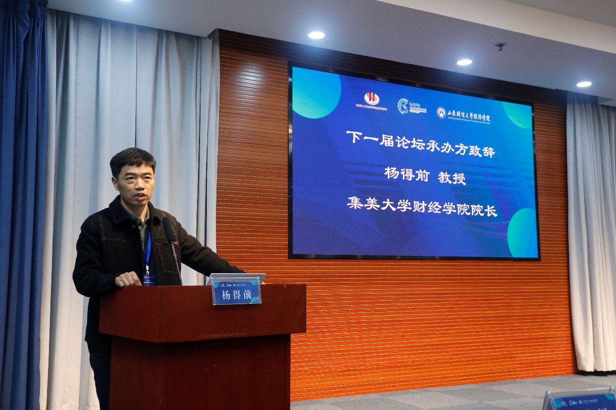 24日上午的闭幕式环节由谢申祥教授主持。复旦大学世界经济研究所副所长沈国兵教授做了较为全面的会议总结,并感谢山东财经大学经济学院作为承办方在会议期间的优质会议服务工作。集美大学财经学院院长杨得前教授做了下一届主办方致辞,并热情、诚挚地邀请各位专家学者将于明年上半年相聚厦门、莅临美丽的集美大学进行学术论道。最后,谢申祥教授宣布了第十一届中国世界经济学科专家和中青年学者学术论坛顺利闭幕�