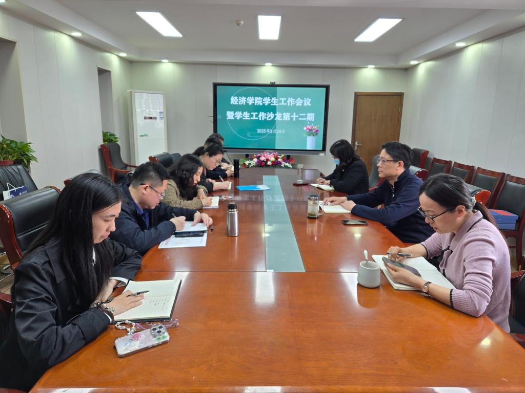 3�24日下午,经济学院在舜耕校区办公楼1208会议室召开学生工作会议暨第十二期学生工作沙龙。学院党委书记姜伟、副书记李冰封、陈静以及全体辅导员参加本次会议。会议由李冰封主持�