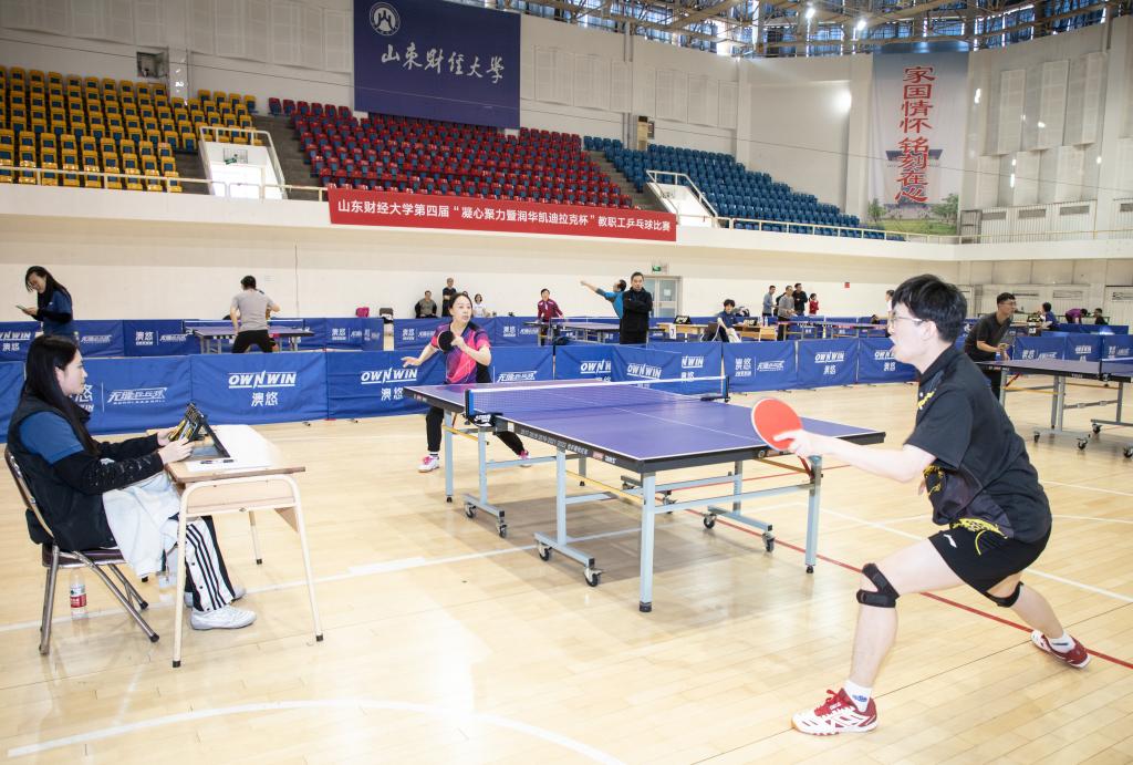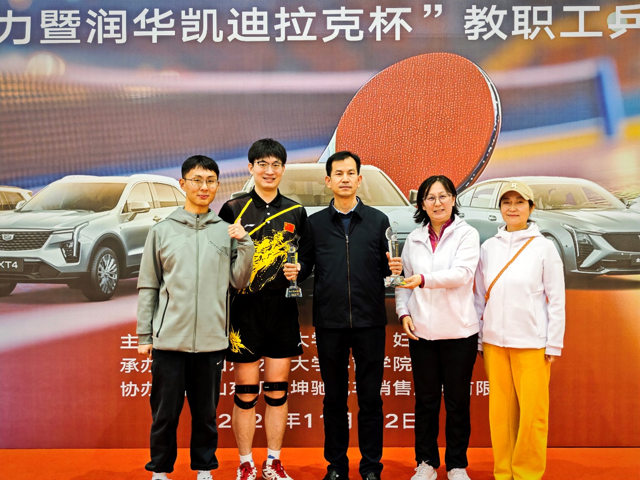 2025�11�2日下午,山东财经大学第四届“凝心聚力暨润华凯迪拉克杯”教职工乒乓球比赛在山东财经大学舜耕校区体育馆顺利闭幕。经过两天激烈角逐,我院代表队夺得团体亚军,青年教师马千里夺得男子单打冠军�