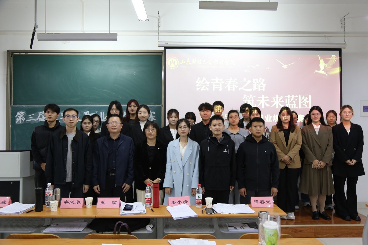 为引导我院学生前瞻行业趋势,帮助学生明确职业路径,提升其规划与就业竞争能力,11�6日下午,经济学院在章丘校�7号教学楼举办“绘青春之路,筑未来蓝图”第三届职业规划大赛。职业规划师(GCDF)、MBA学院EDP中心副主任史萌,经济学院辅导员李建永、秦小晴、谭春光、张仰威、管光栋出席比赛并担任评委�