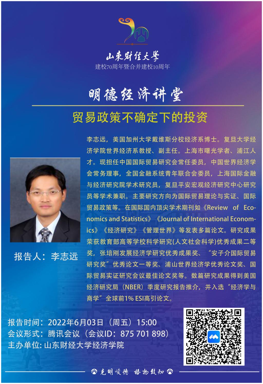 明德经济讲堂:贸易政策不确定下的投资-山东财经大学经济学院 <#webadvjs#>
