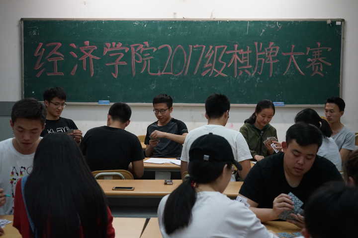 (通讯员:白战� 孙俏俏)4�21日下�18�30,经济学院于圣井校区敏行楼B5-401�402�403教室举行“以棋会友,棋乐无穷”棋牌大赛,比赛由院学生会社团部主办,经济学院棋牌协会承办,16�17级各班选手参加比赛�