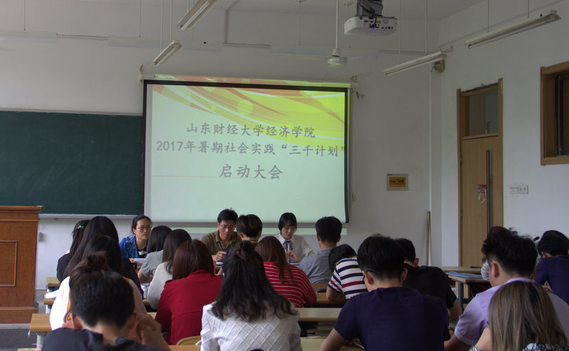 (通讯员:杨晶 李雨桐)为切实加深同学们对社会实践的认识和理解,为更好地做好今年的暑期社会实践“三千计划”工作,2017�5�11�-16日,山东财经大学经济学院2017年暑期社会实践“三千计划”启动大会在舜耕、圣井校区教室召开,院党委副书记任海伦出席,经济学�15级�16级各班同学到场参加。大会由院团委书记兼学工办主任周新秀主持�