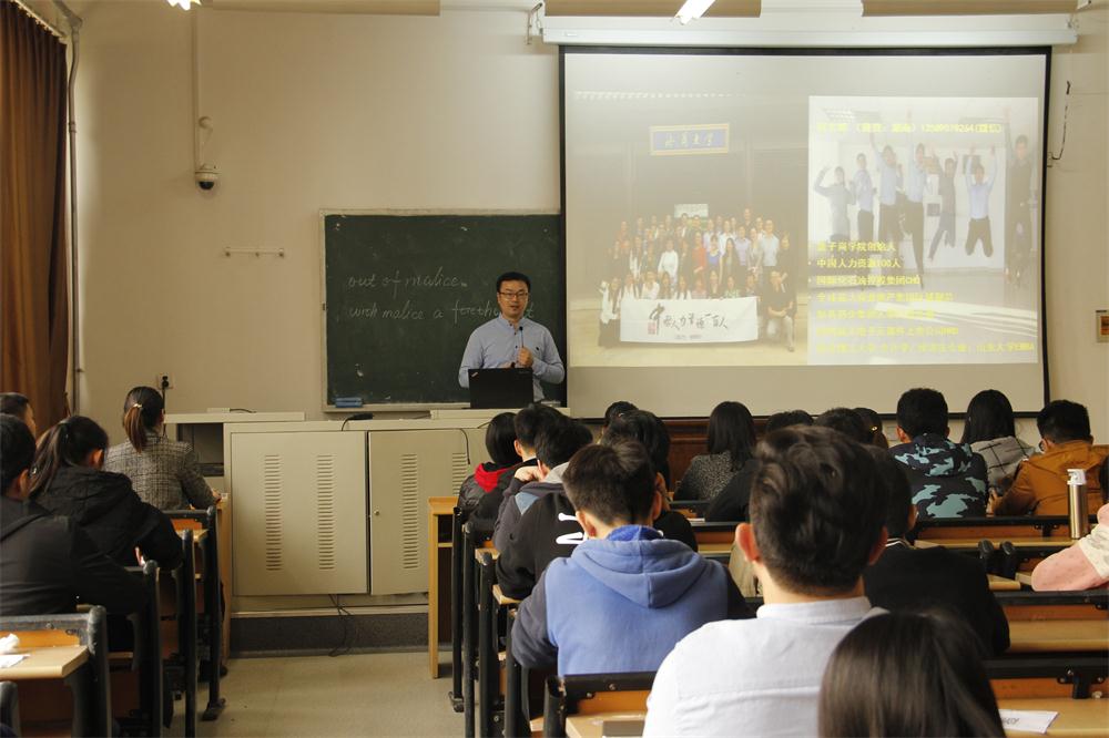 (通讯员:杨晶、郭雯瑶�11�17日下�2�00,经济学院于舜耕校�2404教室举办“与智慧同行,做最好的自己——遇见未知的微职场”就业指导讲座。讲座由饺子商学院创始人何志辉主讲,我院党委秘书兼就业办主任李冰封主持,我院14�15级部分同学到场参加�