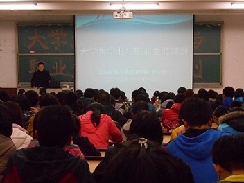 齐博士首先强调职业生涯规划的重要性,他用图文并茂的方式对同学们提出五点要求:一、掌握专业基础知识,明确学业目标与职业规划的目的;二、了解职业生涯规划的基本理论及意义,择世所需,择己所学、所爱、所长,转变就业观念,实现“人职匹配”;三、运用系统化职业规划法制定规划,逐步实现“明确目标——自我探索——决策有效——求职行动——再评估——确定规划”;四、进行兴趣、性格、职业及价值观探索,勇于探索,扬长避短,合理定位;五、基于职业视角进行学业规划,找出今后的学习重点,学在当下。齐博士向同学们表达了“在校园,设目标,勤学习,毕业求职如探囊取物找到好工作;入职场,定规划,快发展,职业发展似鲲鹏展翅实现个人梦”的美好祝愿�告诫同学们积极思考未来,明确定位,正确认识和评估自我,科学合理地规划职业生涯发展�