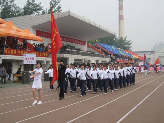 上午8�30分,在高亢激昂、欢快热烈的节奏中,运动会开幕式缓缓拉开序幕。我院运动员代表队率先进场,他们怀揣必胜的信念,昂首阔步,精神抖擞,英姿飒爽。鲜艳的院旗在风中飞舞飘扬,嘹亮的口号响彻云霄,“青春飞扬,经济无双,放马金鞍,共创辉煌”,他们向全校师生充分展现了经济学院积极向上、奋力拼搏的精神面貌�