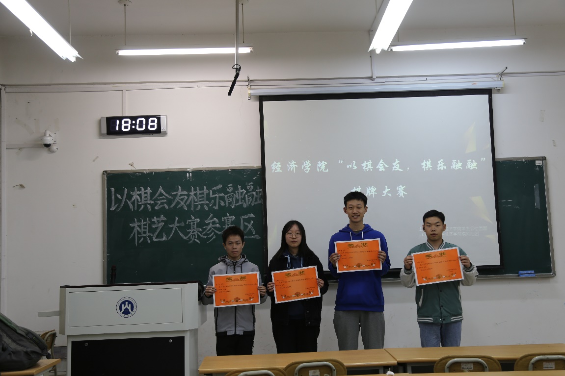 (通讯员:刘毓菲)11�28日下午,经济学院于圣井校区敏行楼举办“以牌会友,棋乐融融”棋牌大赛。本次比赛由经济学院社团联合会主办,经济学院礼韵棋风社承办,面向圣井校区全体学生。此次大赛旨在普及棋牌类知识,丰富同学们的日常生活,吸引了来自经济学陀统计学陀工商管理学院等多个学院2020�2021两个年级共计45名同学参加�