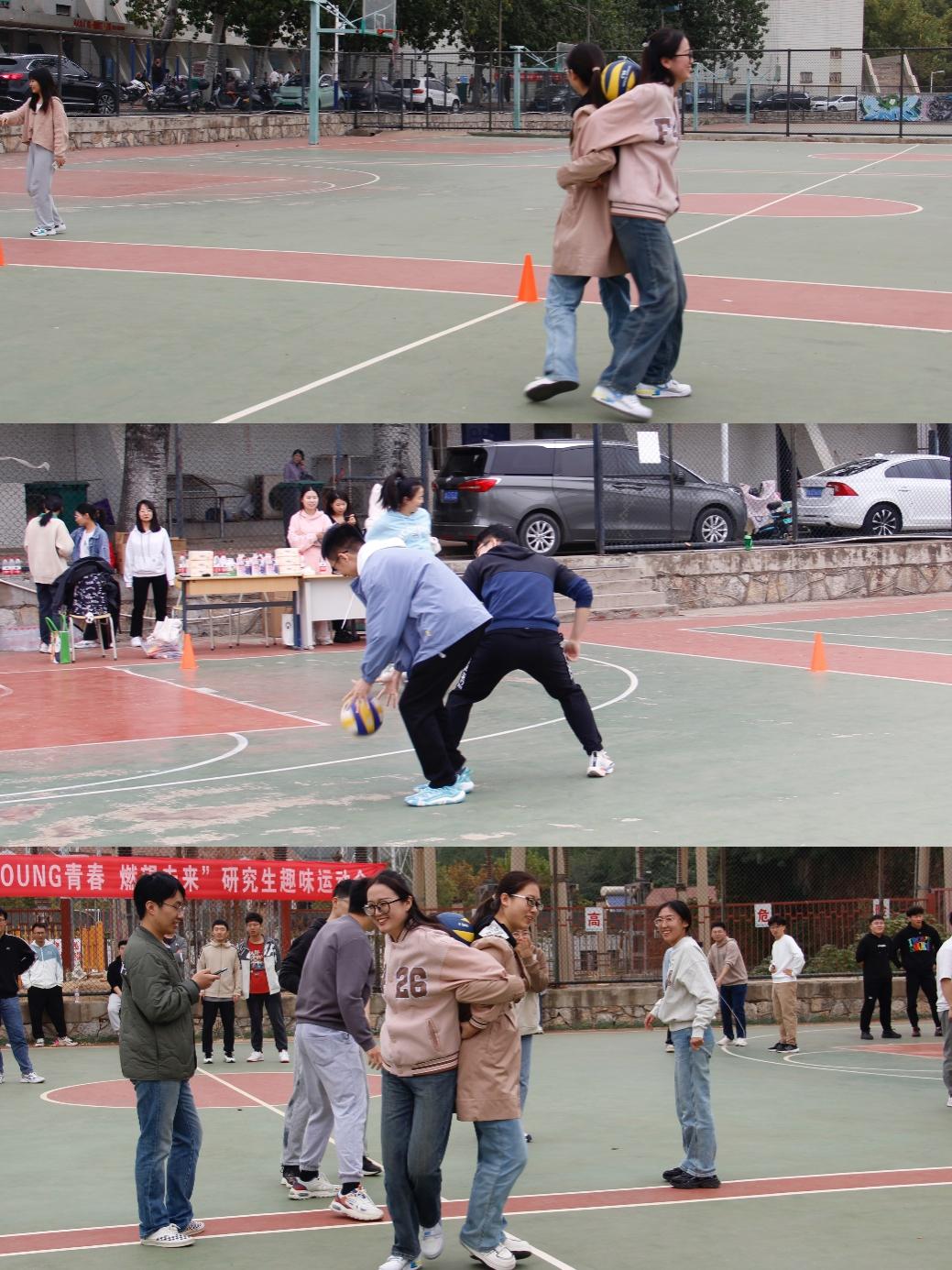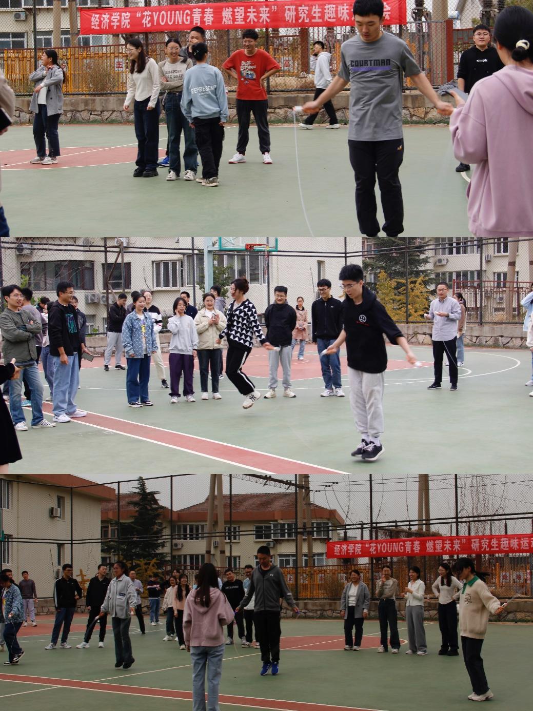 (通讯人:张可�2023�11�3日,经济学院在舜耕校区篮球场举办2023年研究生趣味运动会。经济学院党委副书记李冰封、陈静,学工办主任裴斐,院团委书记付雯,党委专职组织员王琦到场为同学们加油助威,2023级全体研究生以及2021级�2022级部分研究生参加运动会�