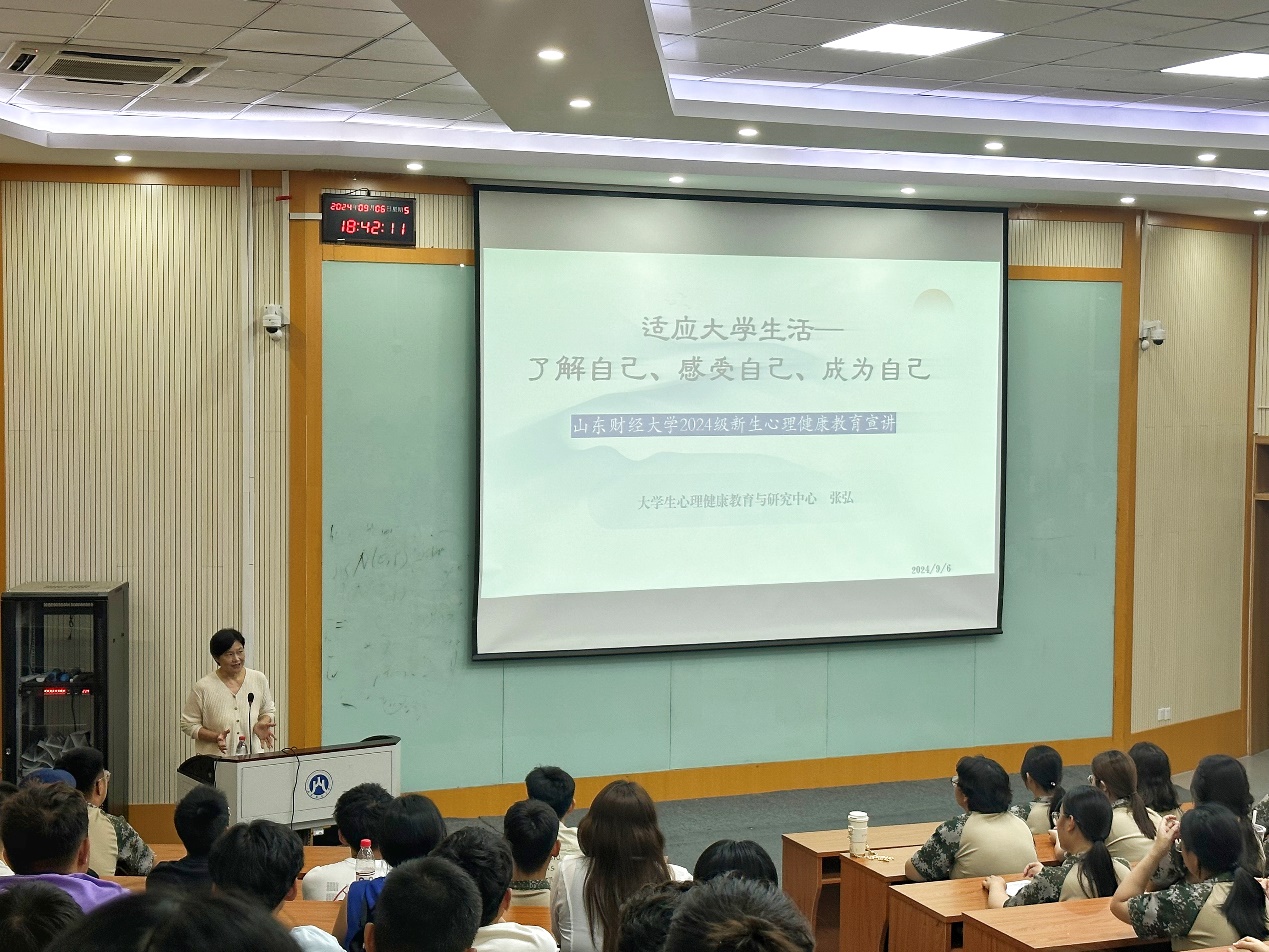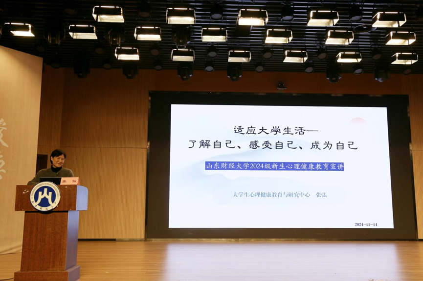 (通讯员:范嘉� 戴悦偲)为贯彻落实《全面加强和改进新时代学生心理健康工作专项行动计�(2023-2025�)》要求,引导学生正确认识自我,提升情绪管理能力,更好地适应大学生活,经济学院于9�6日晚上�11�14日晚上分别在舜耕校区第三阶梯教室和圣井校区文化活动中心报告厅举办心理健康教育讲座,讲座特邀山东财经大学大学生心理健康与研究中心副主任、国家二级心理咨询师张弘主讲,经济学�2024级全体学生参加�