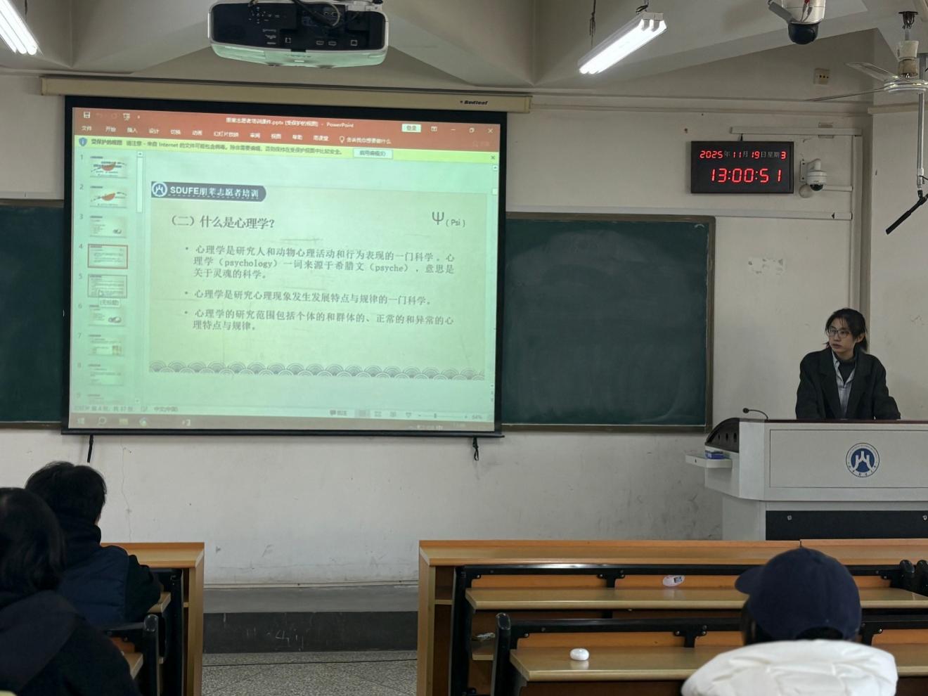 管光栋从心理学的概念及特点切入,引出当代大学生面临的心理困惑,进而强调朋辈志愿者服务同学心理健康的职责。围绕“尊重、共情、真诚”的工作态度,传授给朋辈志愿者在服务中识别同学心理危机的方法,以及身边同学遭遇心理危机时的帮扶经验,同时细化校园志愿服务规范与应急处置流程,明确服务边界和责任清单,筑牢志愿者的规则意识与风险应对能力�
