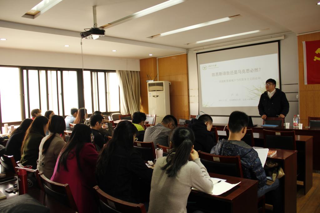 315日下午,浙江大学卢江副教授在天舜大厦六楼会议室为全院师生带来一场精彩的学术报告,题为�凯恩斯谆告还是马克思必然?——资源配置视域下当代资本主义的走�》�