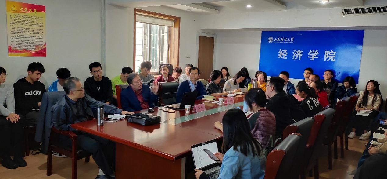 2020�10�11日下午,由我院主办的经济论坛(第116讲)在舜耕校区经济学�1208会议室顺利举行。本期邀请到云南财经大学首席教授、经济学院荣誉院长、金融研究院院长、新结构经济学研究中心执行主任龚刚担任主讲专家。论坛由经济学院院长谢申祥主持,学院部分师生到会聆听�
