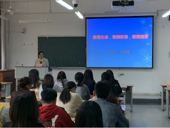 仵颖涛指出:在万米高空的险情中如此从容,每一个传奇背后都隐藏着坚守和执着。同时,仵颖涛对同学们提出三点要求:一是要“敬畏生命”,要珍惜生命,珍惜生命中的每一天;二是要“敬畏职责”,作为当代研究生,要牢记自己的使命和职责,要以学习为重;三是要“敬畏规章”,每一位同学都要遵守规章制度,遵守学校的校规校纪�