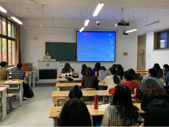 11�1日下午,经济学院党委副书记仵颖涛在舜耕校�3302教室对经济学�2019级全体研究生开展“敬畏生命,敬畏职责,敬畏规章”主题教育,全体同学通过观看电影《中国机长》深化主题教育�