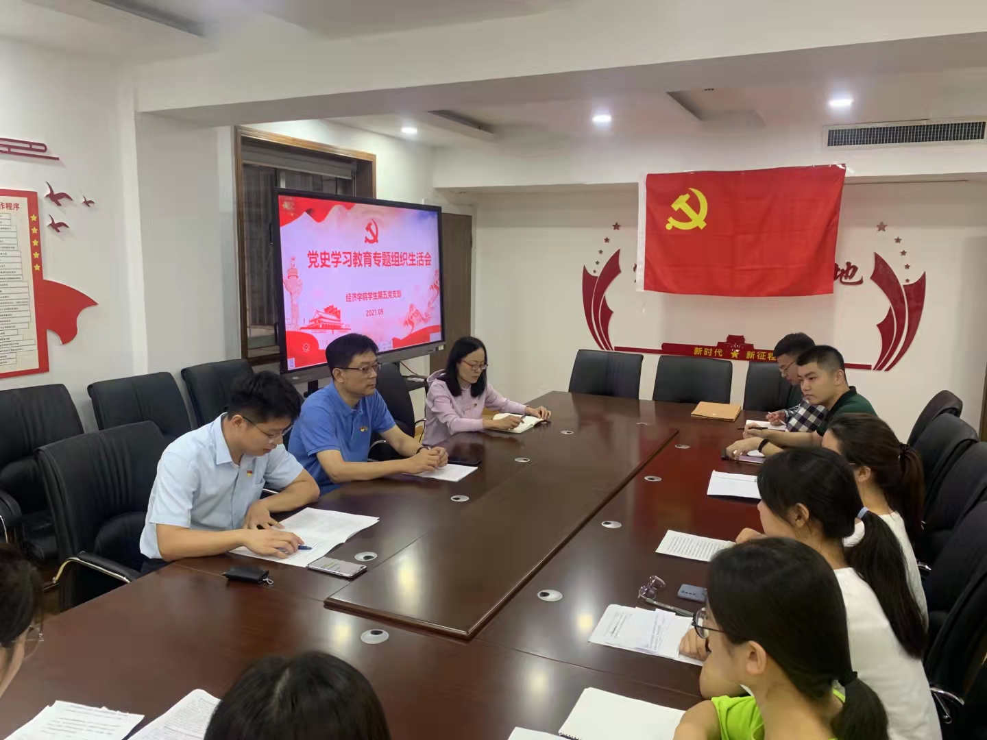 (通讯员:王琦 朱海� 李晓宁)9�6日上午,经济学院党委书记姜伟、副书记李冰封参加并指导学生第五党支部党史学习教育专题组织生活会,支部全体党员参加会议,会议由学生第五党支部书记朱海林主持�
