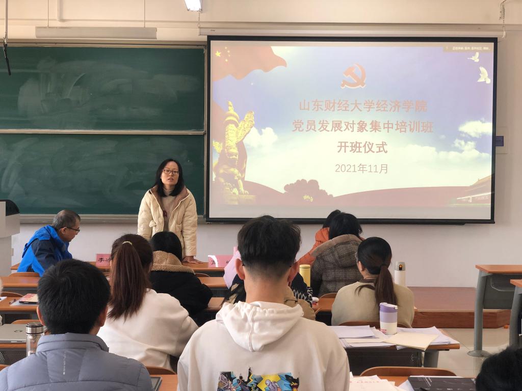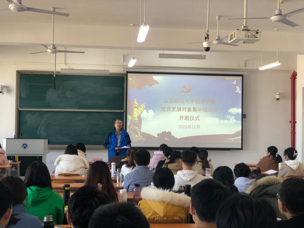 (通讯员:李冰封、冯源)为深入学习贯彻习近平新时代中国特色社会主义思想,切实加强对发展对象的教育和培养,保证新发展党员的质量,按照学校党委组织部要求,经济学院分党校于2021�11�30日在舜耕校�1301教室、圣井校�7号楼7408教室举行经济学院�23期党员发展对象集中培训班开班仪式。党委副书记高峰、李冰封出席开班仪式并作开班讲话,130名新一批党员发展对象参加开班仪式,开班仪式由党委专职组织员王琦主持�