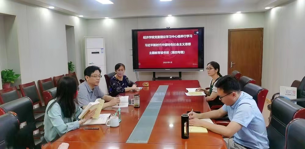 6�8日�9日,经济学院党委理论学习中心组主题教育读书班以“正确理解和大力推进中国式现代化”为专题进行第四次集体学习,重点系统学习了《习近平新时代中国特色社会主义思想学习纲要》一书和5�29日习近平总书记在中共中央政治局第五次集体学习时关于教育强国建设的重要论述。校主题教育工作办公室刘思峰、李亚列会指导。读书班由党委书记姜伟主持,全体班子成员参加学习�