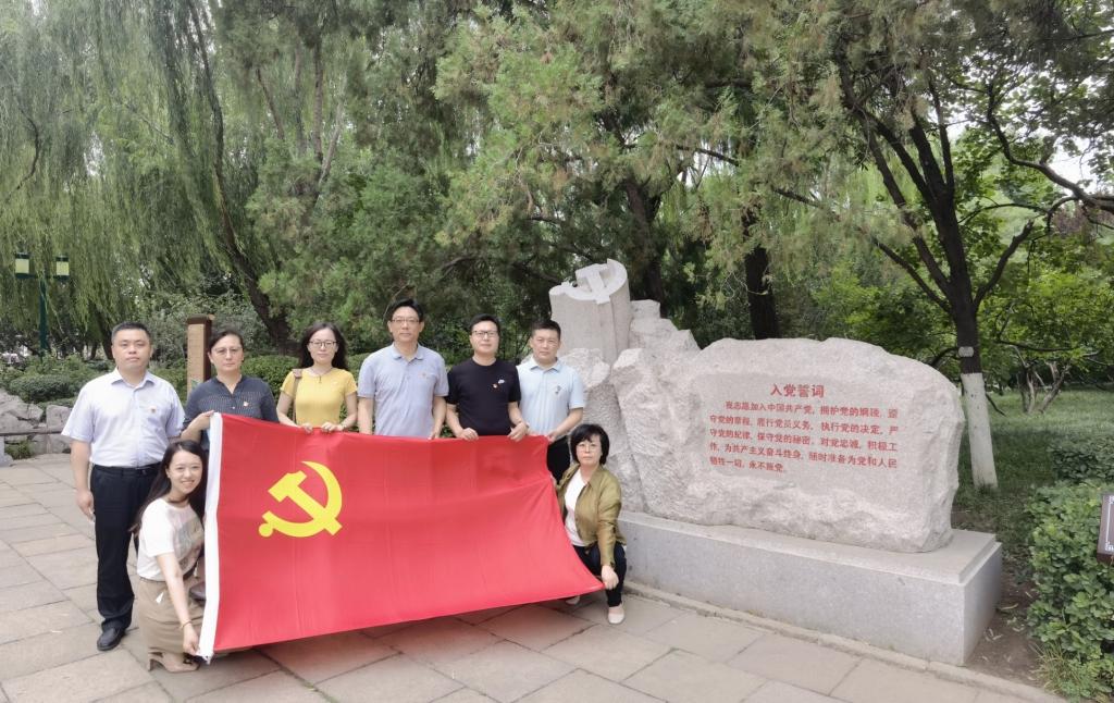 瞻仰中共山东省委机关旧址后,全体党员干部在美铭广场重温入党誓词,在党旗下牢记承诺,永葆共产党员本色,再次向党和人民表明为共产主义事业奋斗终身的决心和信心�