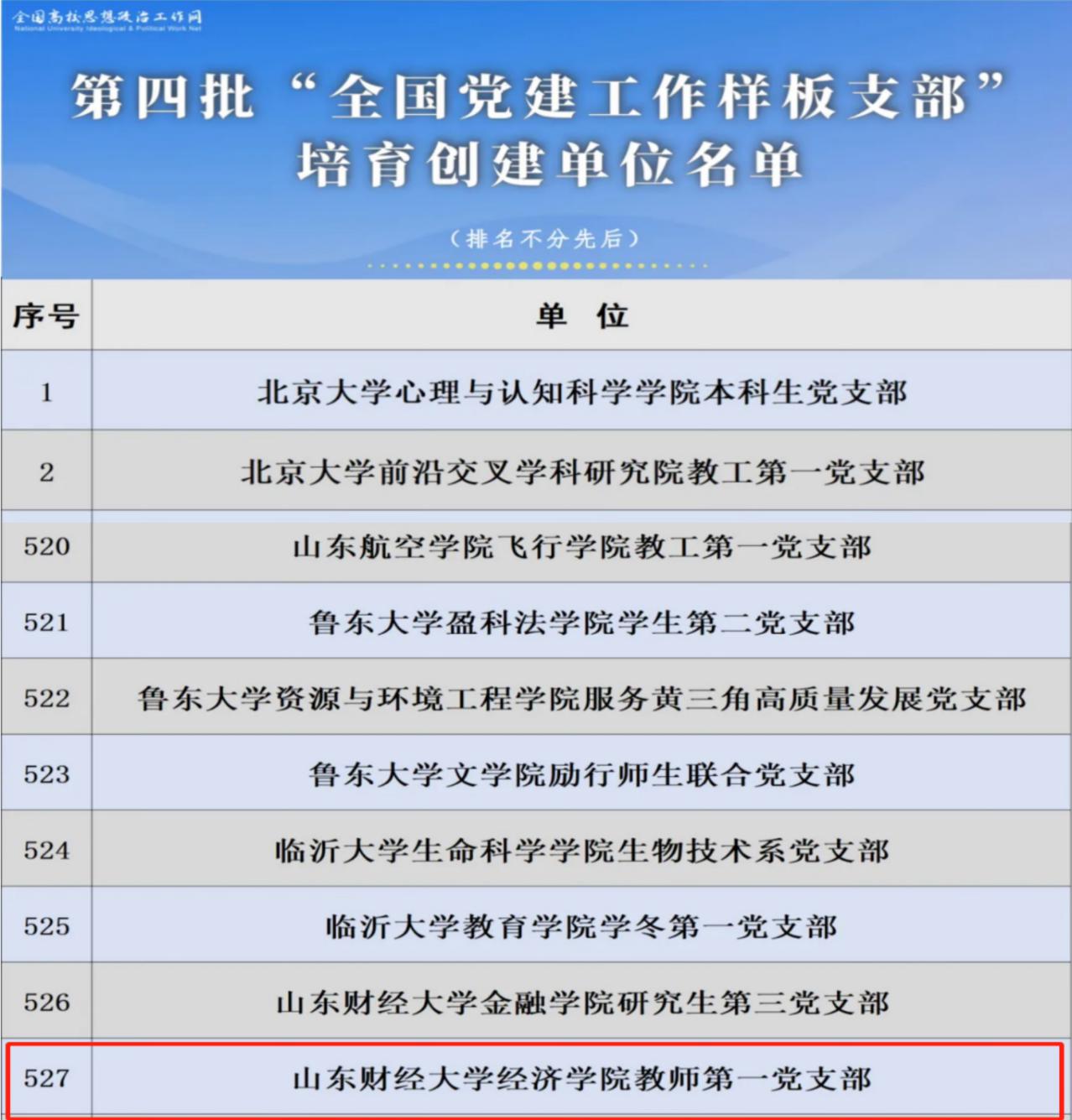 近日,教育部印发通知,公布了第四批全国党建工作示范高校、标杆院系、样板支部培育创建单位名单。我院教师第一党支部成功获批第四批“全国党建工作样板支部”培育创建单位。据悉,山东省高校共�73个党支部入选第四批全国党建工作样板支部培育创建单位�