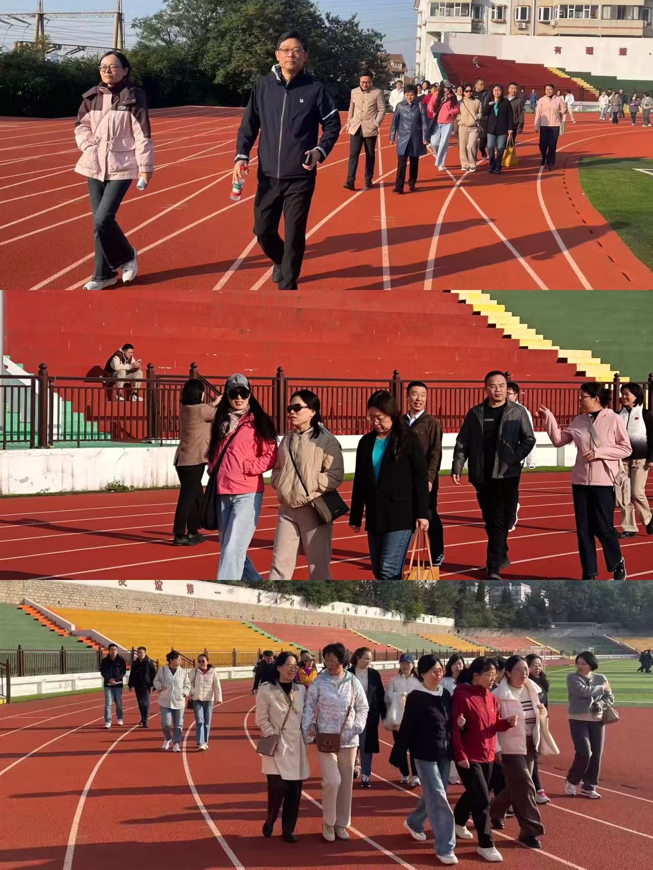 教职工齐聚体育场,步伐矫健、精神饱满,或阔步前行,或结伴交谈,一路欢声笑语。微凉秋风拂面,大家在亲近自然中舒缓压力,充分展现经院人团结奋进、和谐向上的精神风貌�