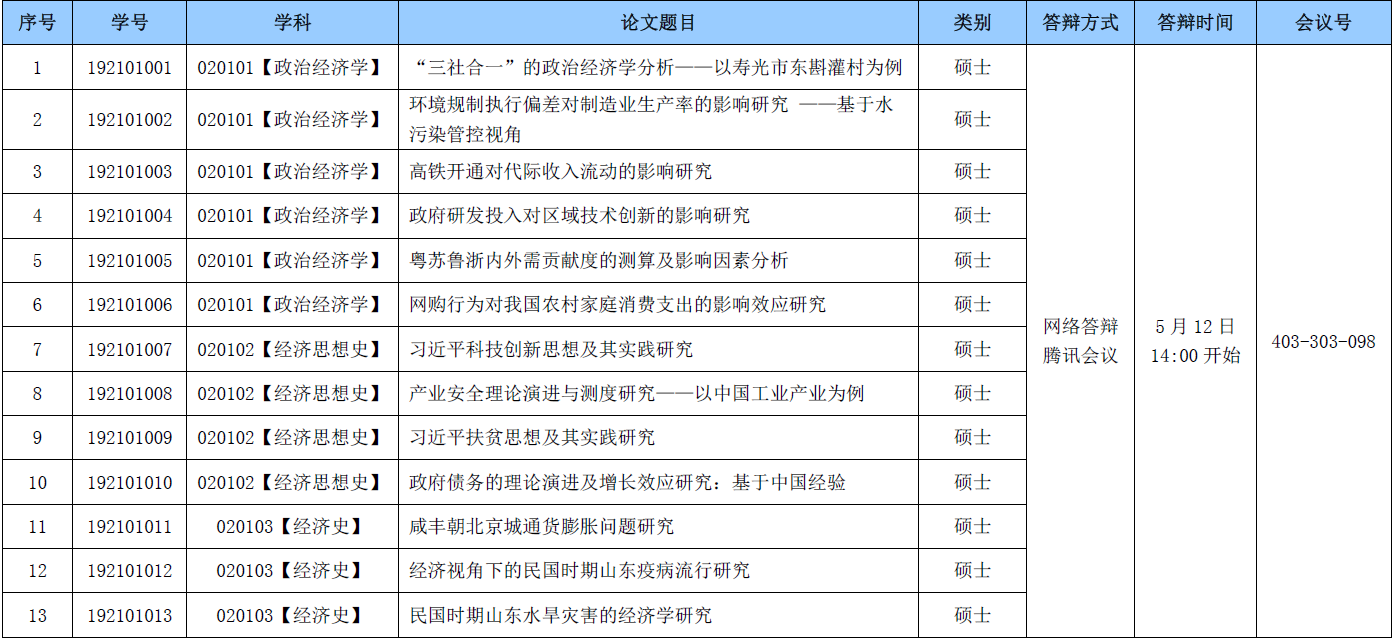 经济学院2022届研究生学位论文答辩公告