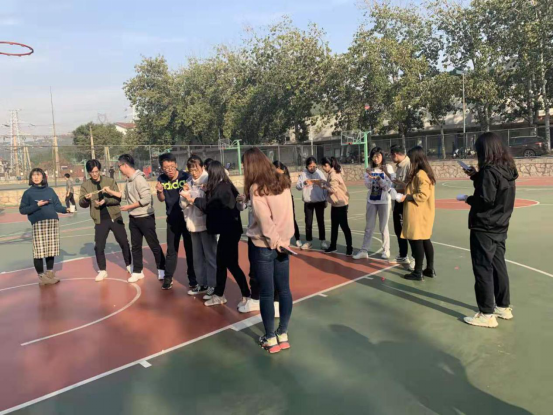 2019�11�15日下�2点,经济学院趣味运动会在舜耕校区篮球场顺利举行�2019级全体研究生参加了比赛,经济学院学工办主任周新秀出席本次运动会。经济学院研究生会王倩、赵培坊担任裁判员,王欣欣、梁云燕、于周顺、李艳群、曲元怡、仇佳慧、王婷担任记分员�