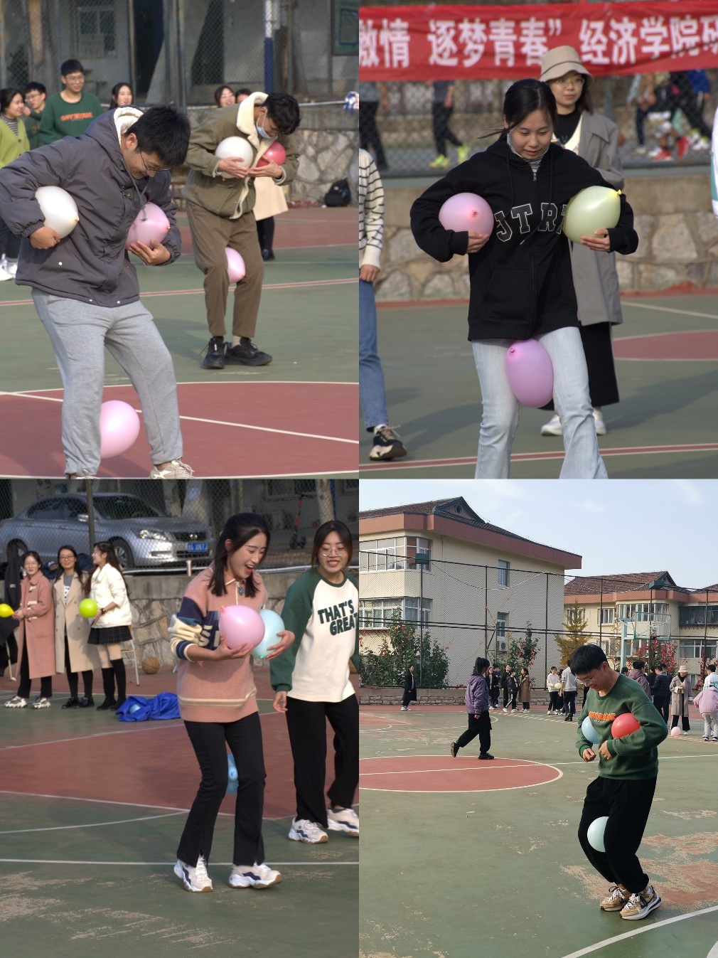 (通讯人:代东俐)2022�11�4日下午院研究生会在舜耕校区篮球场举办趣味运动会。山东财经大学副校长、经济学院院长谢申祥,院党委副书记李冰封、陈静,副院长崔宝敏、张明志来到运动会现场为同学们加油助威,2022级全体研究生以及2020级�2021级部分研究生参加运动会�