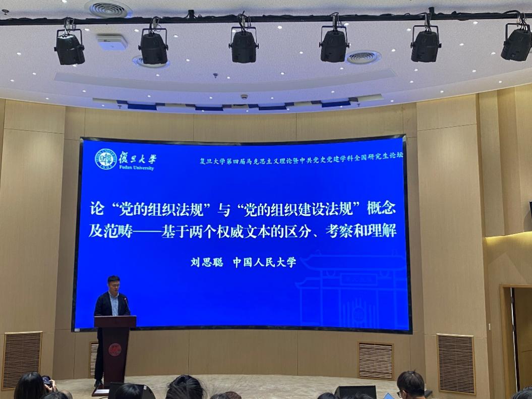 发布日期:2023-10-252023年10月14日至16日,复旦大学第四届马克思主义理论暨中共党史党建学科全国研究生论坛在上海举办。国产视频2023级党的建设(党内法规)专业博士研究生刘思聪向论坛提交的论文《论“党的组织法规”与“党的组织建设法规”概念及范畴——基于两个权威文本的区分、考察和理解》获评特等奖,并获邀在会议主论坛上就该论文作学术报告。
