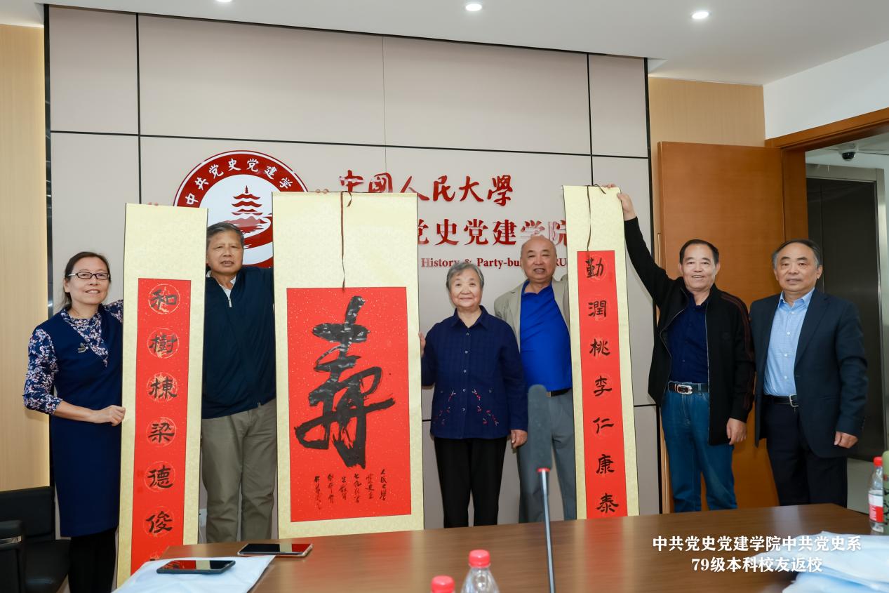 79级校友向曾经教授过自己的恩师们赠送贺寿联,向国产视频 赠送书法作品和成果著作。