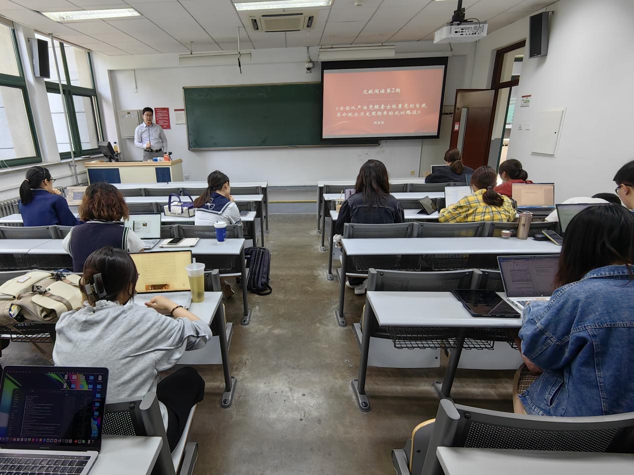 发布日期:2023-05-085月6日中午,国产视频 本科生专业文献研读课程第二讲在公共教学三楼3202教室举办。本次课程由周家彬副教授主讲《全面从严治党探索出依靠党的自我革命跳出历史周期率的成功路径》文献,国产视频 2020、2021、2022级本科生参加活动。