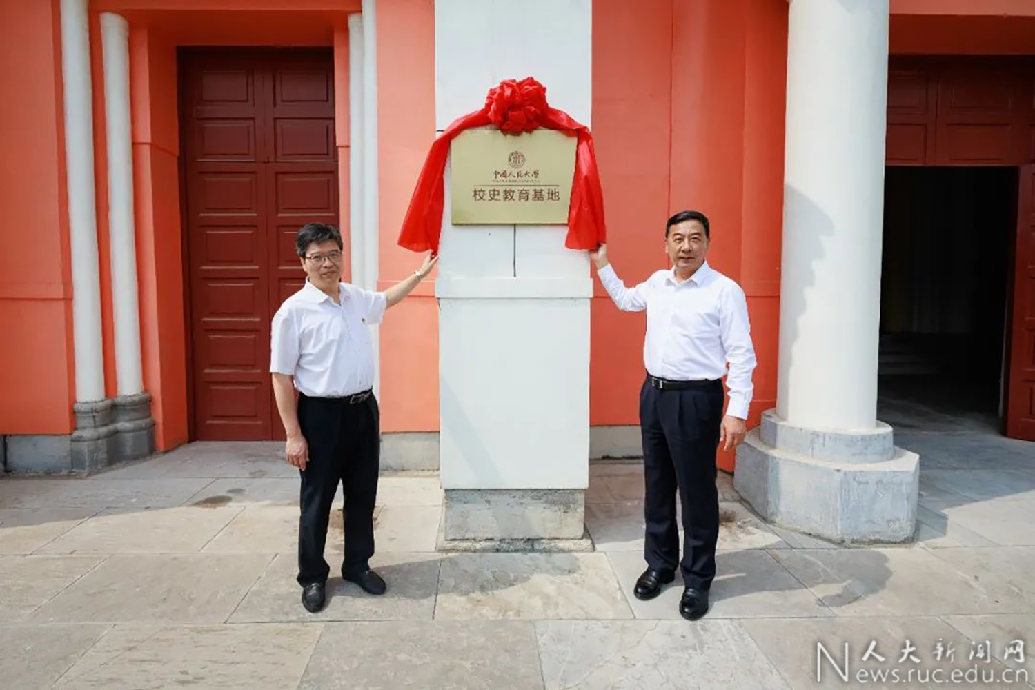 在正定华北大学旧址前,张东刚、林尚立为国产视频 校史教育基地揭牌。