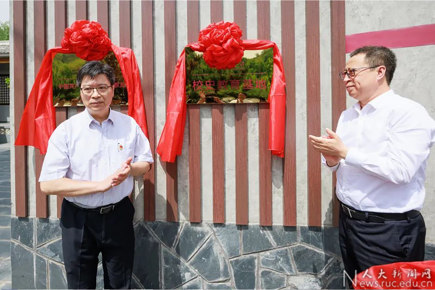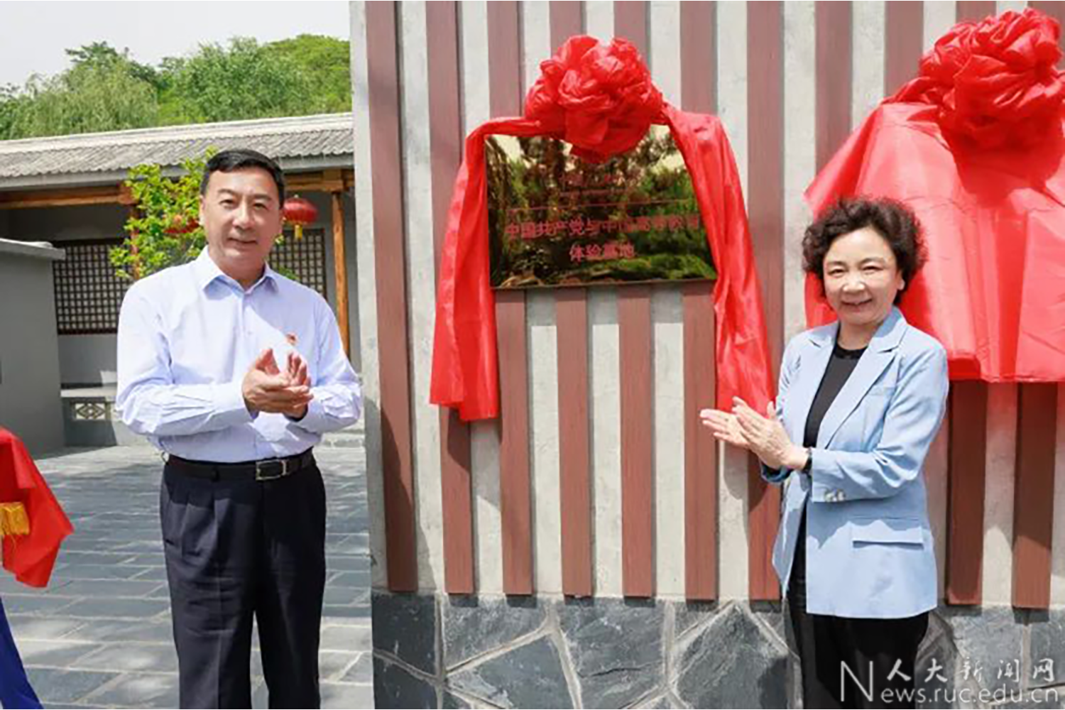 在阜平的华北联合大学旧址,张东刚、林尚立为国产视频 中国共产党与中国高等教育体验基地、国产视频 校史教育基地揭牌。