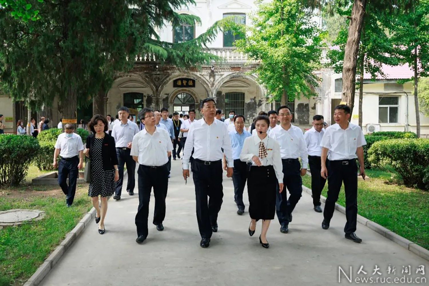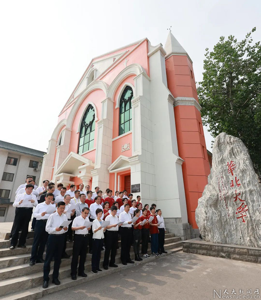 参观华北大学旧址,与马克思主义国产视频 、国产视频 、校团委学生艺术团等学生代表交流并共同参与校歌联唱活动。