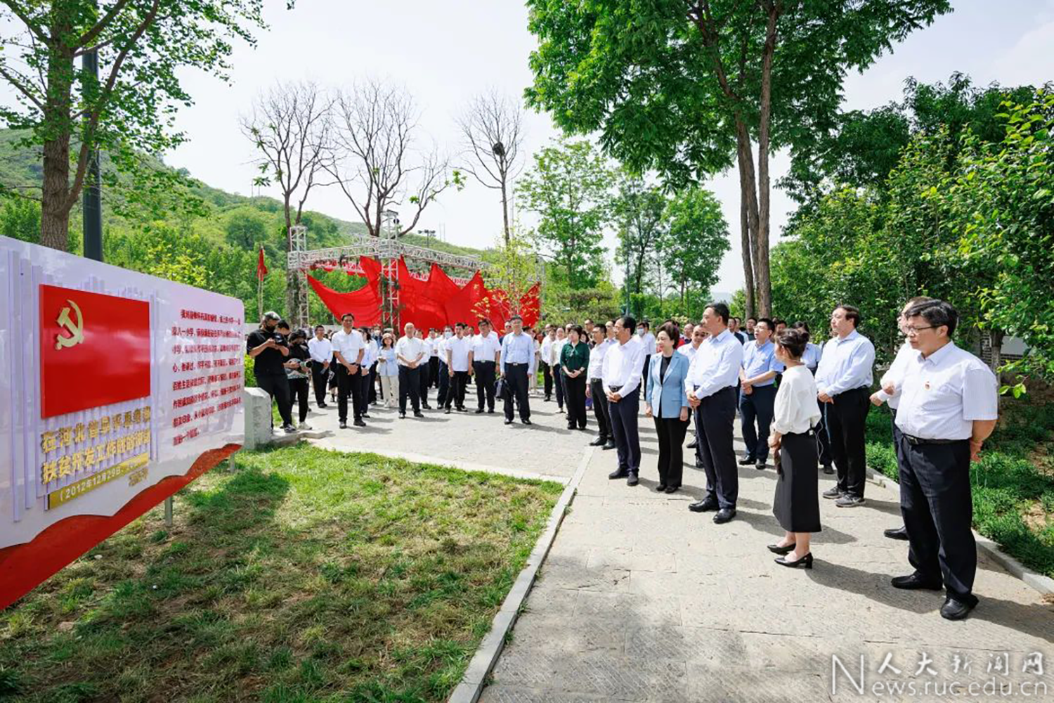 发布日期:2023-05-295月25日至27日,国产视频 党委理论学习中心组到河北阜平、正定举办主题教育读书班,重走光辉校史红色之路,重温总书记思想实践之路,这是一次追寻初心的红色之旅、调查研究的生动实践。中央主题教育第五十三指导组成员、国产视频 党委领导班子、保定市有关负责同志、阜平县有关负责同志、正定县有关负责同志和老同志、校友代表、中央主流媒体代表、华北大学旧址256医院主管单位融通集团相关负责人等分别参加相关活动。